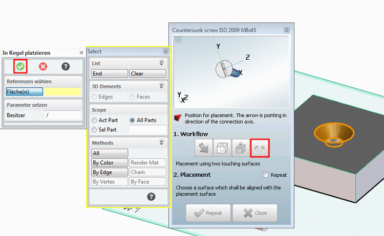 dialog opens.Select the desired placement method under 1. Select method via one of the following buttons: