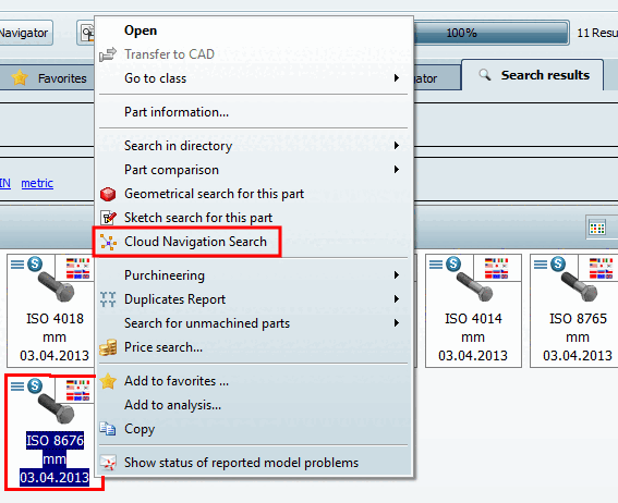 -> I risultati della ricerca [Search Results] vengono visualizzati nella pagina della scheda Cloud Navigator.