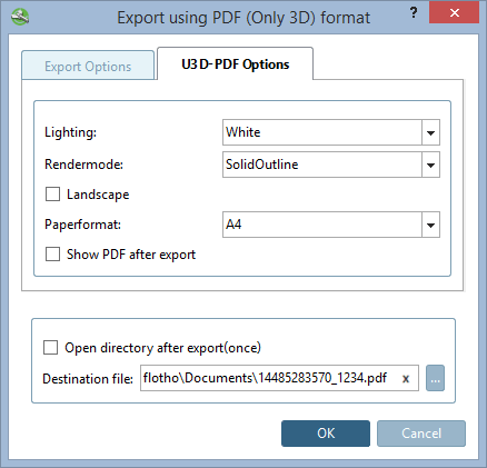 -> Si apre la finestra di dialogo Esporta in formato PDF (solo 3D).