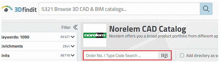 Assicurarsi di aver già selezionato il catalogo su 3Dfindit. La ricerca del numero d'ordine non funziona nella barra di ricerca standard di 3Dfindit.