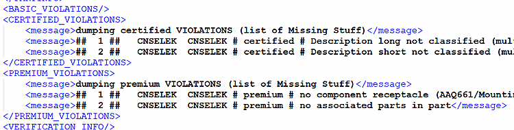 La sezione CERTIFIED_VIOLATIONS contiene tutte le voci che impediscono alla parte di ottenere lo stato di certificazione.