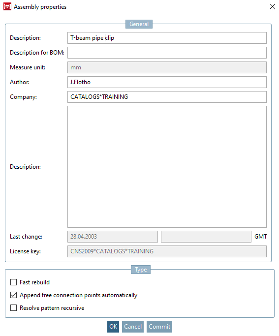 Inserire la parte iniziale fittizia dalla directory .../partsolutions/23d-libs/training/subassembly/profilee inserire le voci corrispondenti nella pagina di dialogo delle proprietà della parte [Part properties].