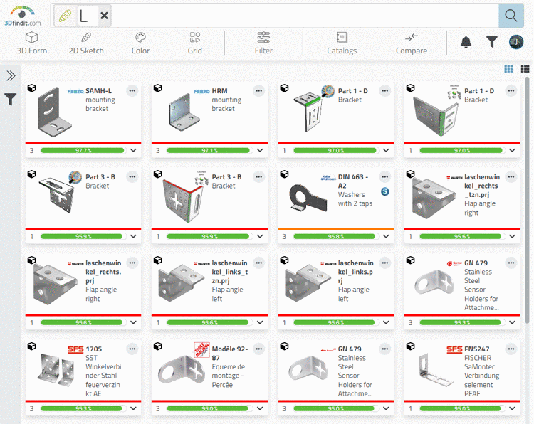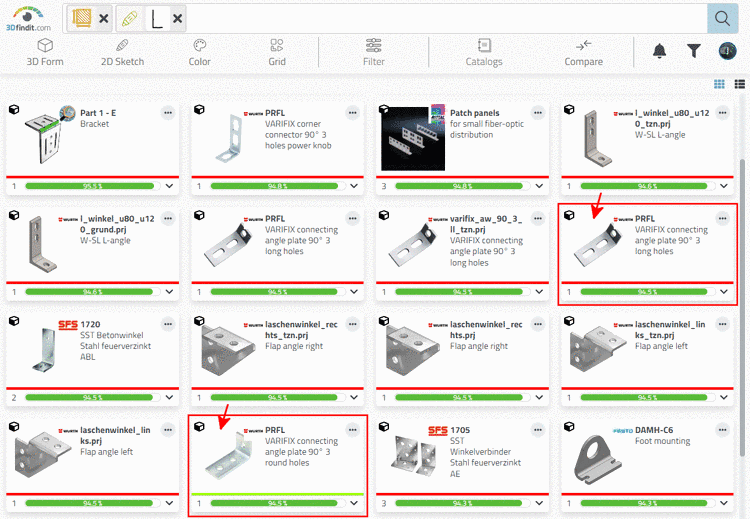 -> Die Suchergebnisse enthalten nun gewünschte Treffer. Es gibt sowohl eine Rundloch- als auch eine Langlochvariante.