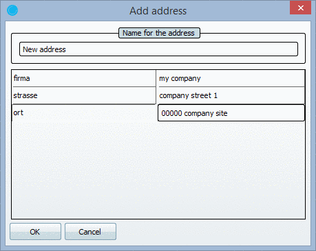 This button opens context menu Add address. In this menu, you can create further addresses for your firm and transfer them to the List of addresses (choose addresses) with . |