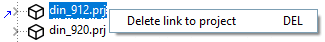 Se si desidera rimuovere nuovamente un collegamento, fare clic sul comando Elimina collegamento al progetto [Delete link to project] nel menu contestuale.