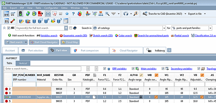 Variabile per parte alternativa [Variable for alternative part] Se si seleziona questa casella, la parte più vicina alla parte della riga preferita nella tabella viene trasferita al sistema CAD come meta-file. Questa funzione è supportata solo da alcuni sistemi CAD.