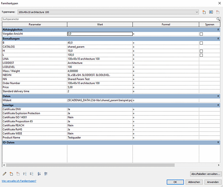 Creazione di parametri condivisi neutri, CADENAS fornisce i propri parametri condivisi