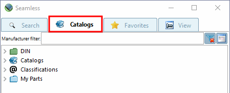È possibile mostrare e nascondere le 3 voci principali Cataloghi [Catalogs], Classificazioni [Classifications] e Parti proprie [My Parts] nella pagina della scheda Cataloghi [Catalogs].