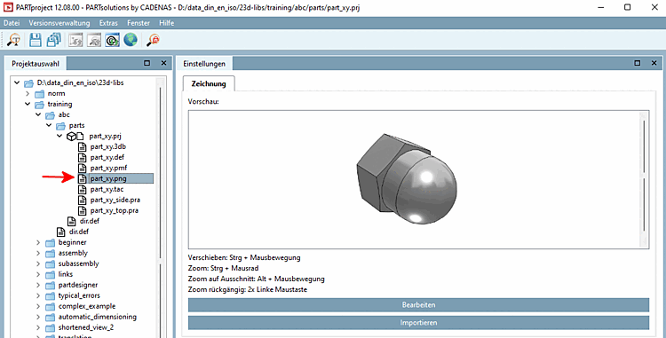 -> In seguito, quando si richiama il progetto, l'immagine di anteprima corrispondente appare nella vista parti del PARTdataManager:[14]