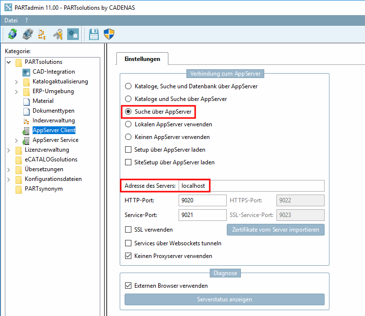 Se si desidera utilizzare l' AppServer locale, tenere presente la seguente impostazione: