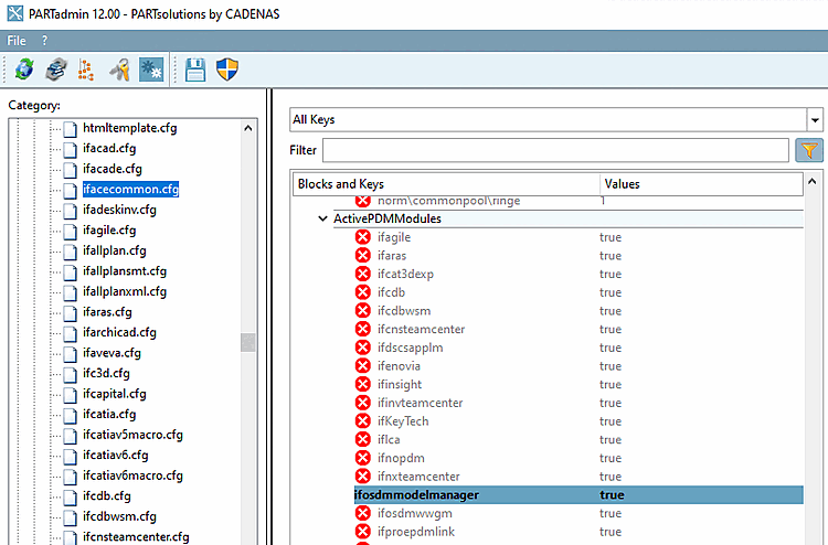 Il blocco [CreationOptions] non è visibile in PARTadmin. Osservare le voci con le stringhe "MASTERDATA" e "LIBRARY_3D" e gli esempi direttamente nel Blocco note.