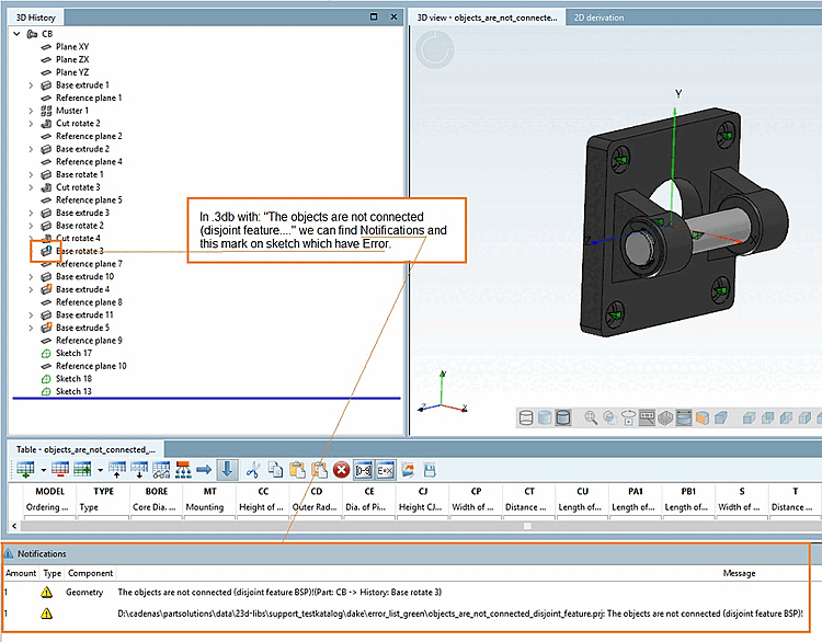 Soluzione: aprire .3db in PARTdesigner. Trovare l'errore nello Sketcher utilizzando la parte Check [Check Part]