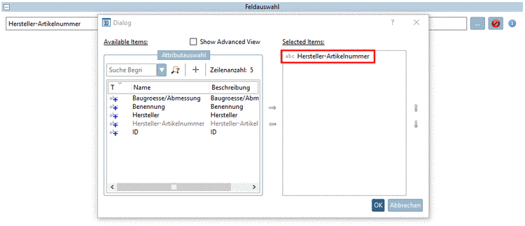 Under Field selection (concerning CSV file), click on the search button and in the dialog box, move the field containing the manufacturer article number from the left to the right via arrow key.