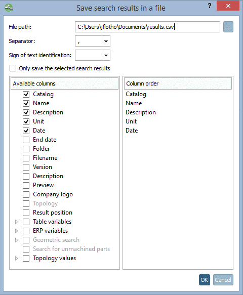 On the right side, only the selected variables are shown. Here you can specify the Column order by moving the single variables on the desired position with pressed mouse button.