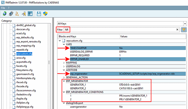 Ora vengono utilizzate le due chiavi ERP_NRGENERATOR e ERP_NRGENERATOR_CONDITIONS.