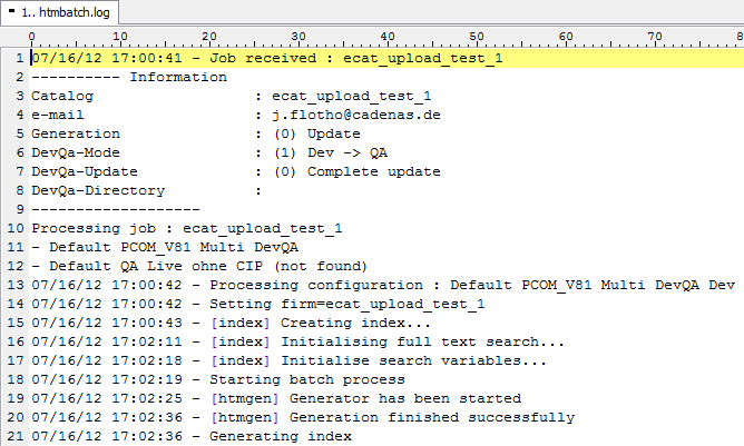 Se sono stati inseriti uno o più indirizzi e-mail nella finestra di dialogo Genera catalogo [Generate catalog] o Pubblica stand live. [Publish Live state...].. (vedere ). Sezione 6.10.5, “ Generare lo stand QA... | Pubblicare lo stand dal vivo... ”(vedi ), al termine del processo di generazione o di pubblicazione si riceverà un'e-mail con allegato un file di registro. Se si sono verificati degli errori, si riceveranno qui informazioni dettagliate.