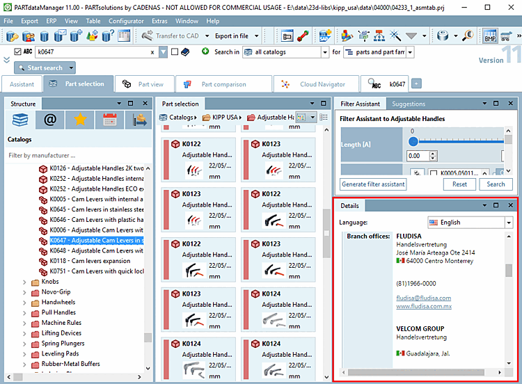 categories.prjche hai sotto PARTproject -> scheda Generale [General] -> Classificazione [Classification] -> Classificazione (Per paese) e caratteristiche (per Paesi) diretto Accesso ai dati.Visualizzare i dati dell'indirizzo in PARTdataManager, nella finestra di aggancio Dettagli.