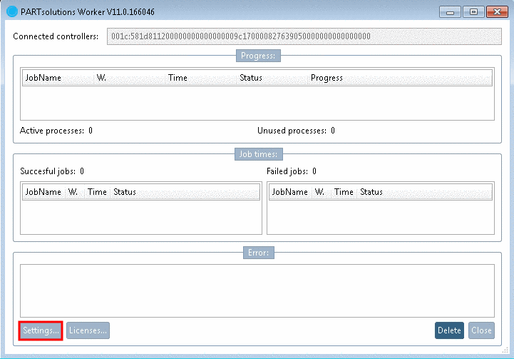 psworker.exewith parameter –gui-> The dialog box Settings is opened.