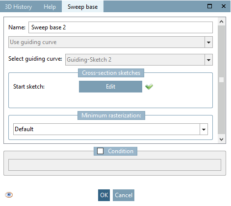 -> Un segno di spunta verde è ora visibile sotto Avvia schizzo [Start sketch] nella pagina della scheda Cronologia di base [Sweep base].