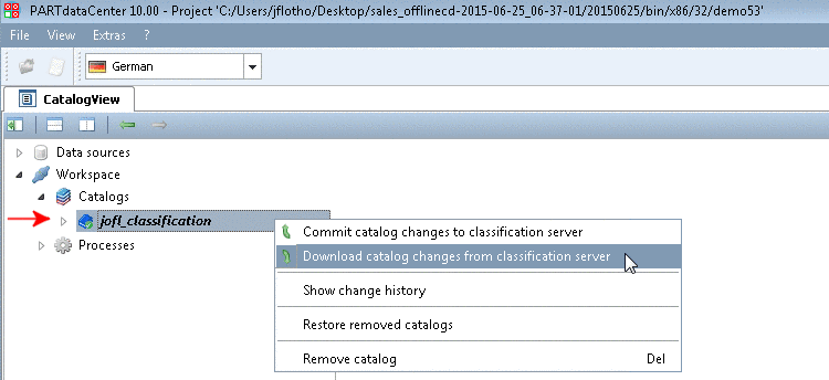 When starting PARTdataCenter the connection to the server has to be established. Otherwise no catalogs will be displayed.