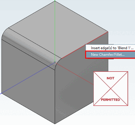 L'uso del comando Crea nuovo smusso/arrotondamento. [New Chamfer/Fillet...].. invece di aggiungere uno o più bordi a 'Blend xy' non è consentito.