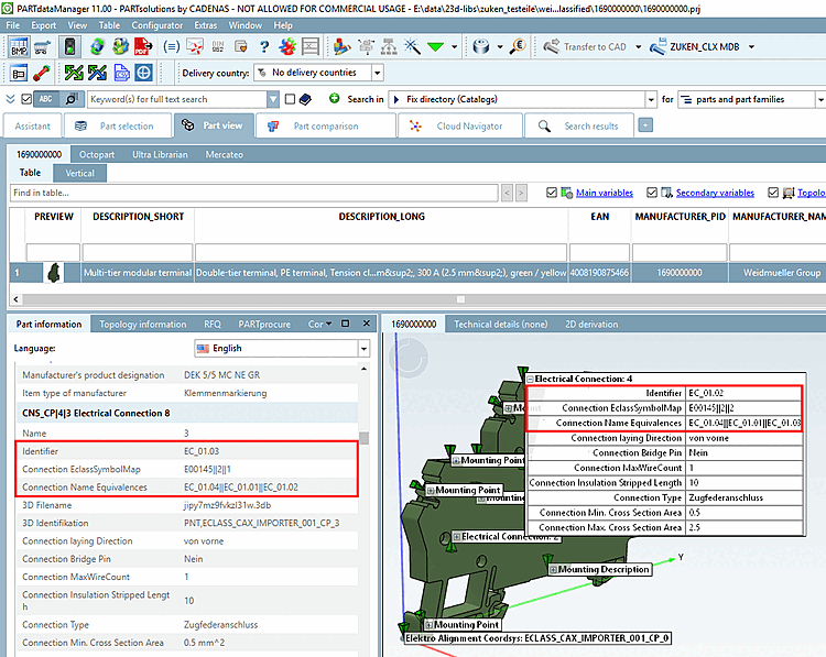 In PARTdataManager, le caratteristiche di classificazione si trovano sotto le informazioni sulla parte [Part information] e nelle etichette della vista 3D.