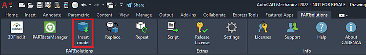[12] Con AutoCAD, ad esempio, Inserisci per impostazione predefinita modello [Insert model] visualizzato. Sia che venga utilizzato in modalità CAD 2D o 3D dipende dal fatto che la derivata 2D sia stata precedentemente creata in PSOL Divenne. La configurazione può essere utilizzata per passare alla visualizzazione dei pulsanti su Inserisci 2D [Insert 2D].