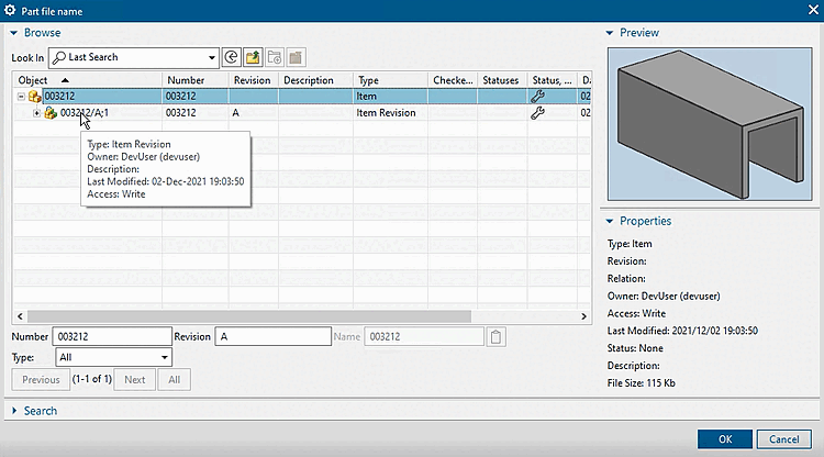 Selezionare l'opzione Teamcenter nel campo dell'elenco in Cerca in.