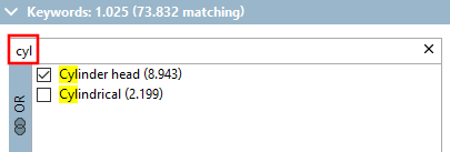 -> Più si specifica, più vengono visualizzati i filtri variabili (per le viti, ad esempio il diametro e la lunghezza della filettatura nominale, ecc.
