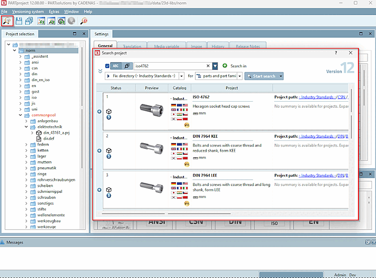 Solo i progetti per i quali è stato creato l' indice per la ricerca full text [Full-text search index] sono inclusi nella ricerca full text. Se si utilizza la ricerca, l'indice deve essere aggiornato in PARTadmin, Gestione indici [Index administration] (Genera indice per la ricerca full text [Create full-text search index] ) (vedere Sezione 1.4.3.6.6.3, “Indice di ricerca full text ” in ENTERPRISE 3Dfindit (Professional) - Amministrazione ). Sezione 5.7.1.4, “ Aggiornare l'indice / Aggiornare l'indice di ricerca / Aggiornare l'indice di classificazione ”Vedi anche . | |