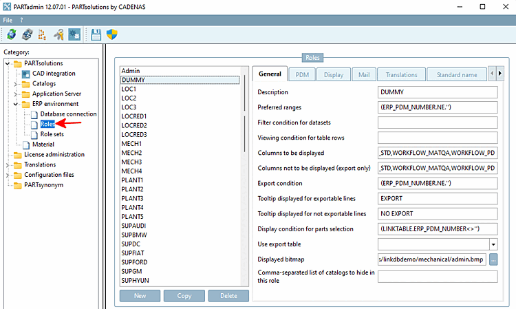 È possibile gestire comodamente tutte le impostazioni dei ruoli tramite PARTadmin -> Categoria ambiente ERP [ERP environment] -> Ruoli [Roles].