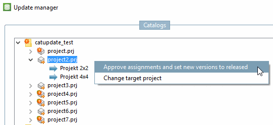 La struttura completa del catalogo viene visualizzata nel Gestore aggiornamenti [Update manager]. È possibile selezionare e modificare singoli progetti o intere directory.