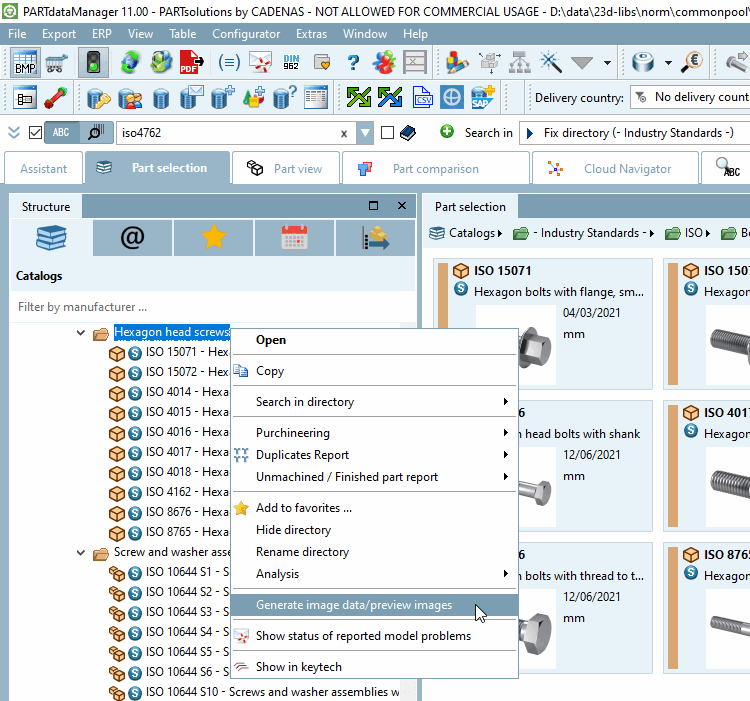 Fare clic con il tasto destro del mouse sull'albero degli indici -> Generare dati immagine/anteprime immagini [Generate image data/preview images]