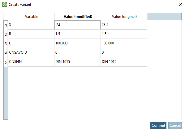 -> Si apre la finestra di dialogo Crea variante [Create variant].