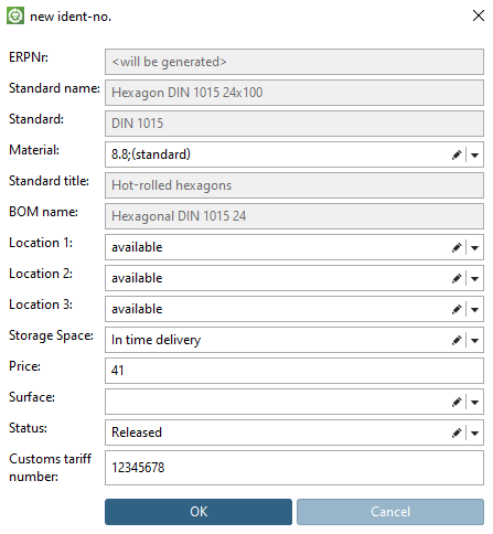 -> Si apre la finestra di dialogo Nuovo numero identificativo [new ident-no.].