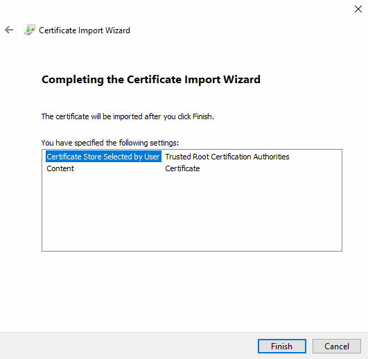 Il certificato è stato importato con successo nell'archivio della certificazione radice del computer locale.