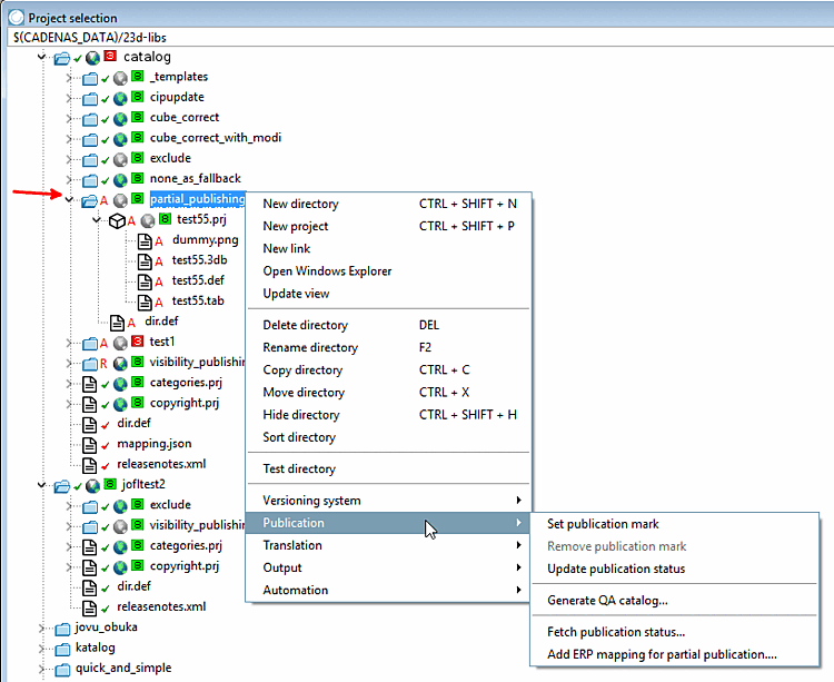 Per la pubblicazione parziale sono necessari diritti speciali. Se questi diritti mancano, i comandi Genera stato QA. [Generate QA catalog...].. e Recupera stato di pubblicazione [Fetch publication status...]... non vengono visualizzati a livello di sottodirectory. Il comando Pubblica stato live [Publish Live state...]... NON è disponibile per le pubblicazioni parziali. NON è disponibile per le pubblicazioni parziali.