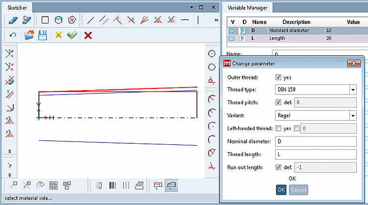 Fare clic sul pulsante Filetto conico su lunghezza [Conical thread by lengths].