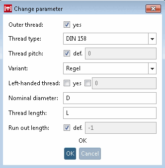 Vedere anche le Sezione 7.9.3.14.1.1.2, “Diversi passi di filettatura e calcoli automatici derivati, ad esempio per la descrizione della linea e il diametro del nucleo ”.