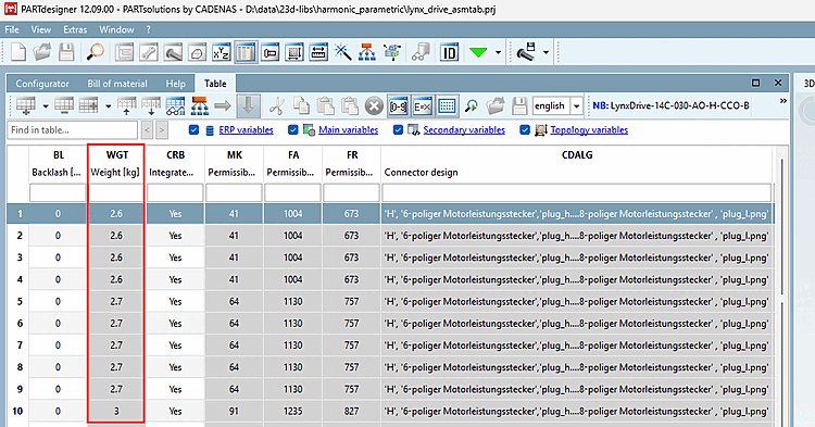 $CADENAS_USER/pdt_import/cache.json), che viene poi utilizzato per identificare le linee corrette Diventa. Finché il catalogo non cambia, questo avviene solo una volta necessario.La viene mappata tramite il file PDT e una colonna CNS_CONDITION. Se le classificazioni devono essere applicate all'intero file di progetto ("intero" significa per tutti i valori delle variabili dell'intervallo di valori), è necessario impostare una CNS_CONDITION con il valore "vuoto" (possibile in tutte le tabelle pertinenti).