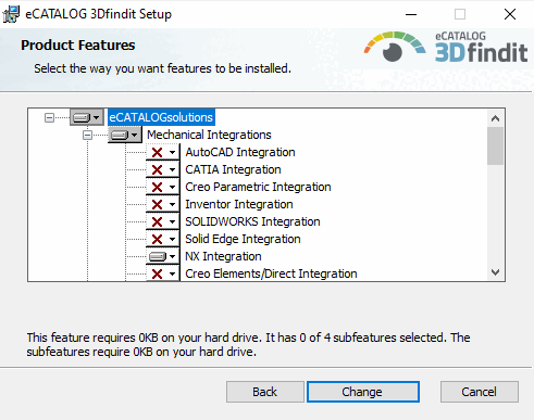Avviare il programma di installazione facendo clic su Cambia (qui si usa "PARTsolutions Enterprise" come esempio).