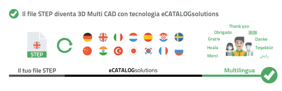 Oltre al file 3D STEP, anche le lingue vengono incorporate nel file CAD.