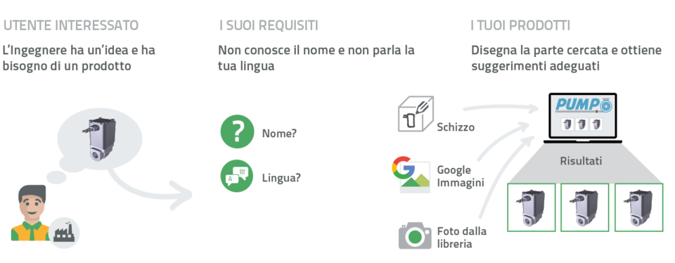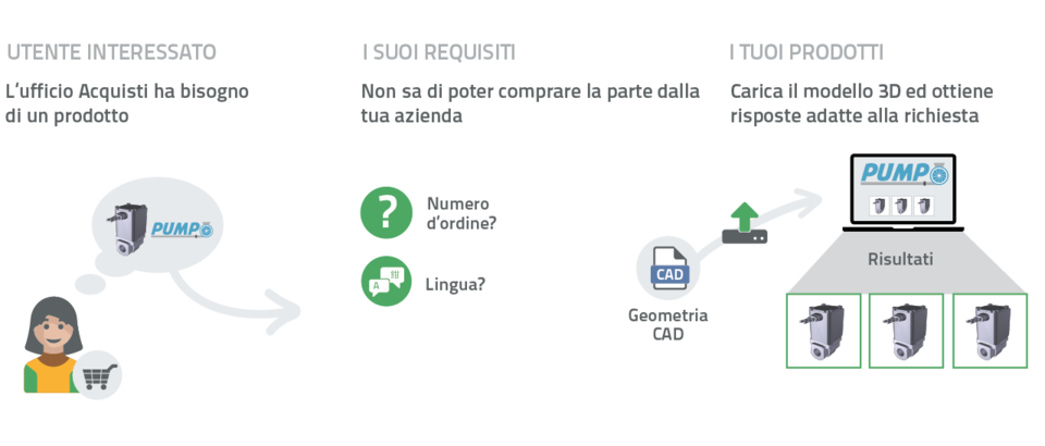 Giovani, Ingegneri inesperti, Architetti o Progettisti specializzati spesso hanno in mente un determinato componente, ma non ne conoscono il nome corretto né tantomeno conoscono quale sia il produttore o un possibile distributore. Ciò potrebbe anche dipendere dal fatto che non parlano la lingua del produttore. Quindi, come fanno i potenziali clienti a trovare i vostri prodotti? In questo caso, eCATALOGsolutions offre funzioni di ricerca intelligente che ovviamente possono essere utilizzate anche a partire dai tuoi file STEP già esistenti.