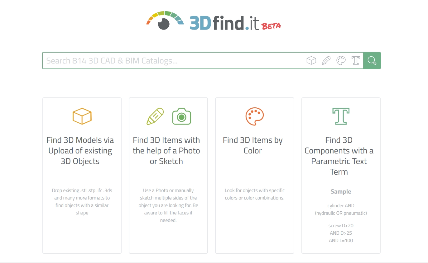 CADENAS has now developed a visual search engine of the next dimension: With 3Dfind.it, engineers, purchasers and architects can find millions of 3D CAD & BIM models from hundreds of manufacturer catalogs available worldwide, including architecture, engineering, electrical engineering and electronic products, then download and use for their design. The search results consist of the digital product data of components that are made available by the manufacturers for engineering, design and planning. Many catalogs offer more than 150 different native and neutral CAD formats such as Autodesk Revit, Nemetschek ALLPLAN, ArchiCAD, Autodesk Inventor, NX, Solid Edge, PTC Creo Parametric, AutoCAD, CATIA or SOLIDWORKS.