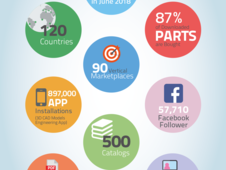 The 3D CAD models download portal by CADENAS continues its success from the previous year: In 2017, PARTcommunity registered more than 260 million 3D CAD models downloads within a year and around 17 million page views from over 120 countries. The PARTcommunity Facebook page has over 57,710 followers and the 3D CAD models of the PARTcommunity are also gladly used on mobile end devices: The 3D CAD Models Engineering App has been downloaded and installed more than 897,000 times to date. (Status: 7/31/2018)